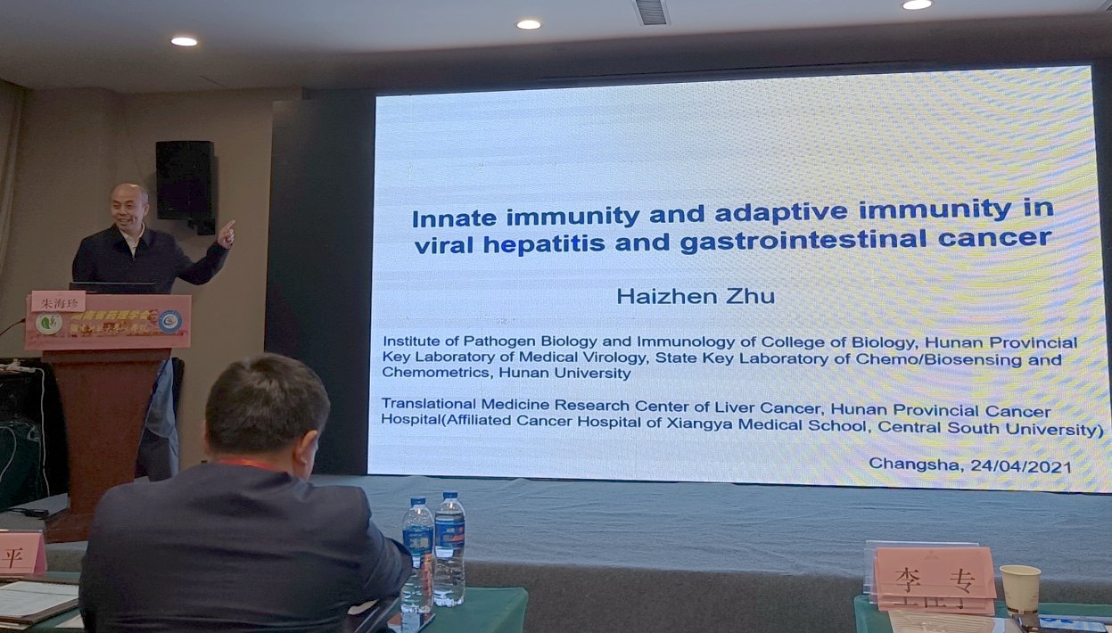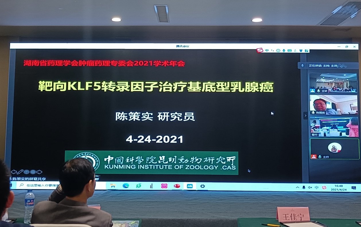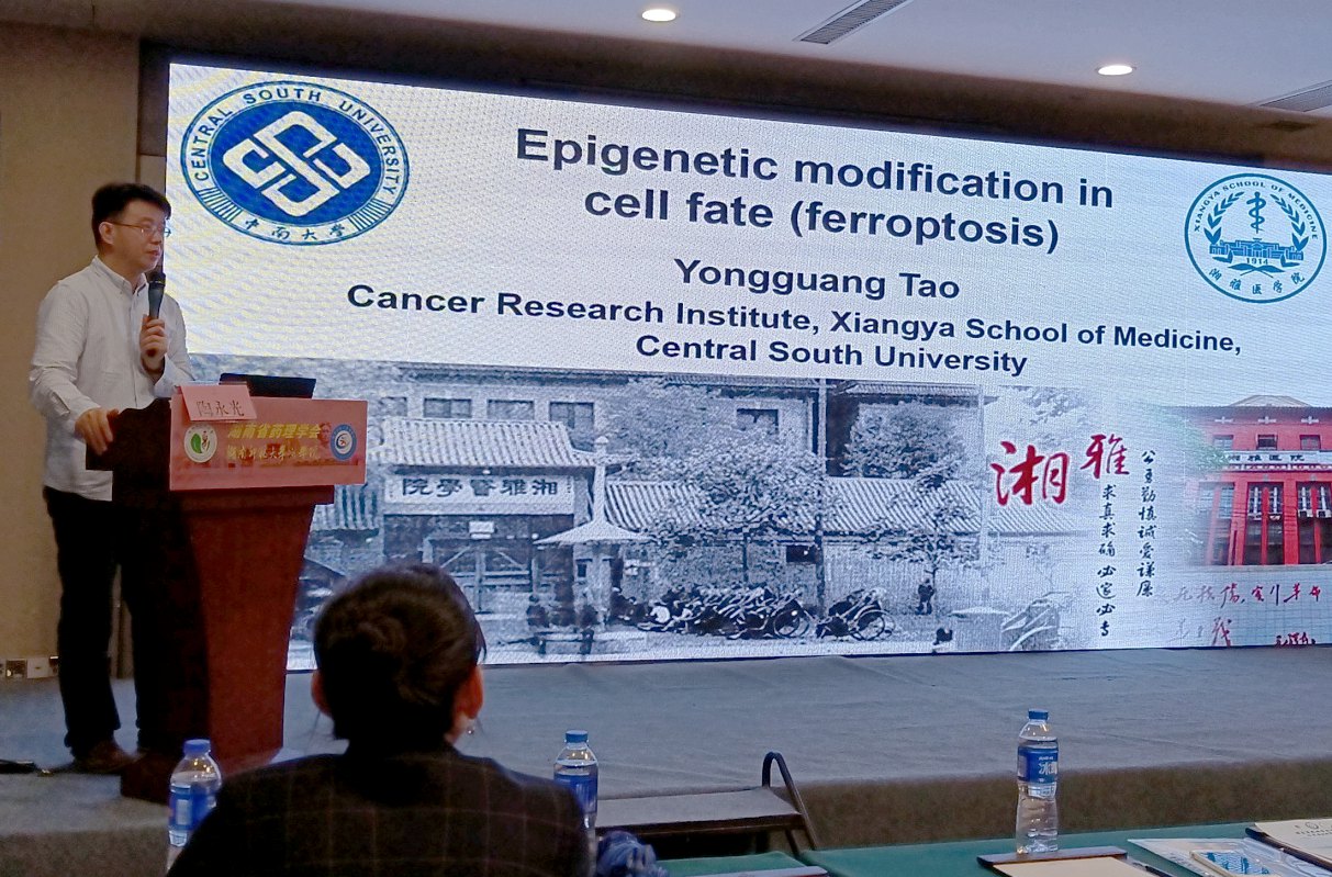 会议第一阶段为学术报告,由来自上海交通大学的长江学者讲座教授、国家杰出青年(海外)、973首席及国务院药学学科评议专家陈丰原教授和来自湖南中医药大学的长江学者王炜教授、中南大学湘雅医院湖南省芙蓉学者肖志强教授及省重点实验室主任湖南省肿瘤医院廖前进教授主持,中南大学湘雅肿瘤研究所陶永光教授、中南大学湘雅医院尹继业教授、圣湘生物王佳宁博士、中南大学湘雅二医院程 岩、湖南大学叶 茂 教授、中国科学院昆明动物研究所陈策实研究员、湖南省肿瘤医院林劲冠 主任分别作了细胞命运(铁死亡)的表观遗传调控、抗肿瘤药物的个体化医学检测、肿瘤基因生信分析与精准医疗、乳腺癌药物治疗增敏策略研究、核酸适体在分子医学中的应用研究、靶向KLF5转录因子治疗基底型乳腺癌(线上)、Innate immunity and adaptive immunity in viral hepatitis and gastrointestinal cancer及肿瘤生物靶向药物临床治疗进展概述等8个学术报告,报告内容丰富,讨论热烈。