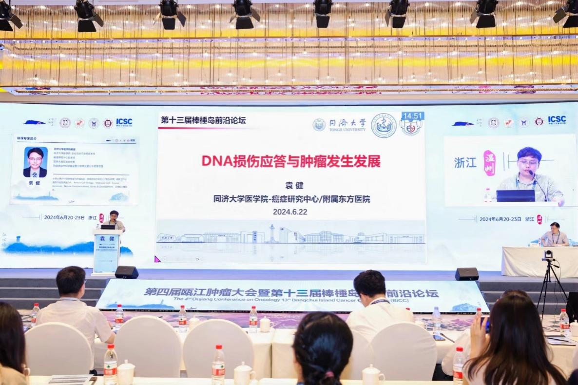 2024 年 6 月 20日,第十三届棒棰岛肿瘤前沿论坛暨第四届瓯江肿瘤大会在浙江省温州市成功举行。本届论坛由温州医科大学附属第一医院主办,温州市医学会外科学分会、中国病理生理学会免疫委员会、温州医科大学肿瘤学科群、全省智慧+肿瘤标志物研究及转化重点实验室(浙江)、大连医科大学肿瘤干细胞研究院、辽宁省生物学研究生创新与学术交流中心协办,由中国工程院詹启敏院士担任论坛主席,中国科学院方修武院士担任常务主席,温州医科大学副校长、附属第一医院党委书记沈贤教授、棒棰岛论坛秘书长刘强教授担任执行主席。论坛邀请中国科学院院士、中国工程院院士、国家自然科学基金杰出青年基金获得者及教育部长江学者等著名肿瘤研究学者做主旨讲座,并进行广泛、深入地学术交流。